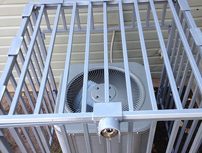 Frontier Steel Products patented air conditioner enclosure is designed as a deterrent to vandalism and thieves targeting outdoor A/C compressor units and copper. Our protective air conditioner enclosure is made up of an open framework of steel structural members that surround and protect the unit.