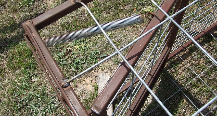 Our wild hog traps are made of 1" primed steel square tubing with 4-gauge galvanized steel hog panel on all sides, top and bottom. The trapping mechanism is a spring-loaded door with a wire trip.